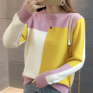 เสื้อสเวตเตอร์ถักคอลูกเรือมิกซ์สี