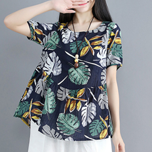 เสื้อยืดพิมพ์ลายคอลูกเรือทรงหลวม