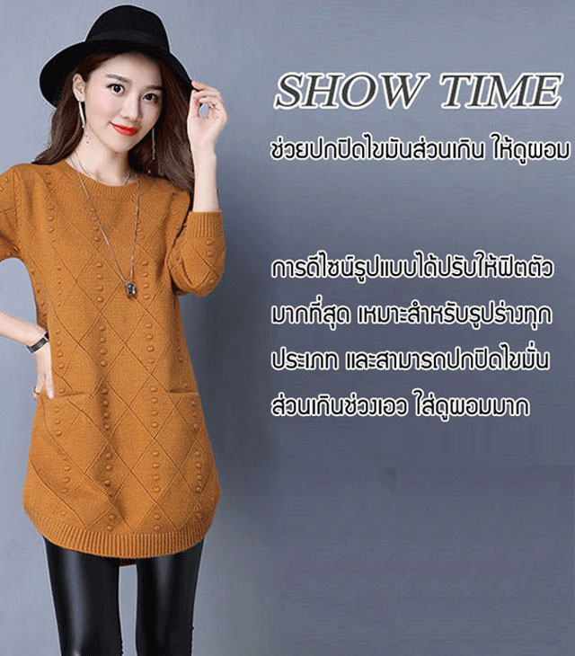 เดรสสเวตเตอร์ถัก คอลูกเรือ สีทึบ ทรงหลวม เข้าชุดง่าย