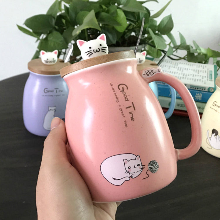 ถ้วยกาแฟเซรามิคลายแมว 450ML
